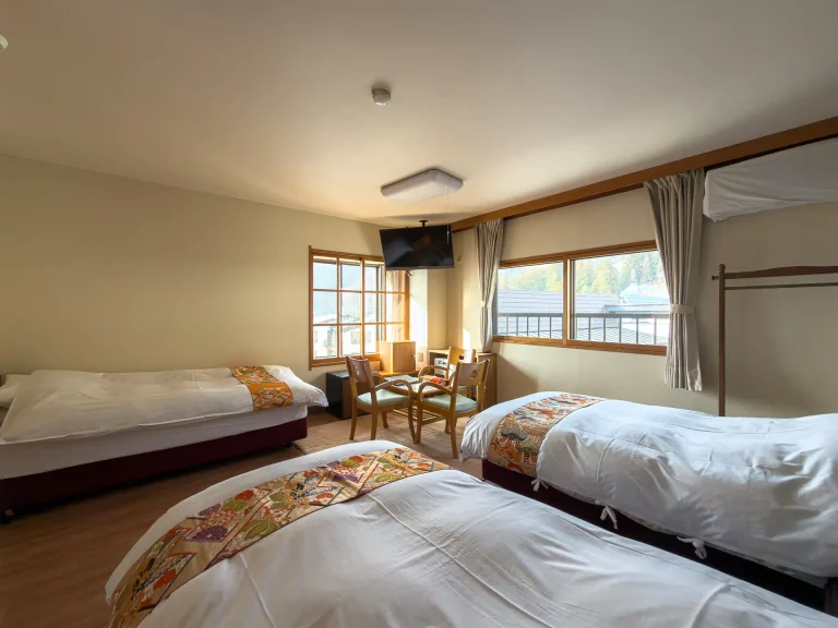 風通しの良いトリプルルーム。シングルベッド3台、バス、トイレ付きです。3名まで宿泊可能。 ケトル、ティーバック、手作りマグカップ、インターネット、薄型テレビ、Bluetoothスピーカー、フリーWifi、金庫、ドライヤー、浴衣 アメニティー付きのバスルーム、お持ち帰り可能な温泉タオル。